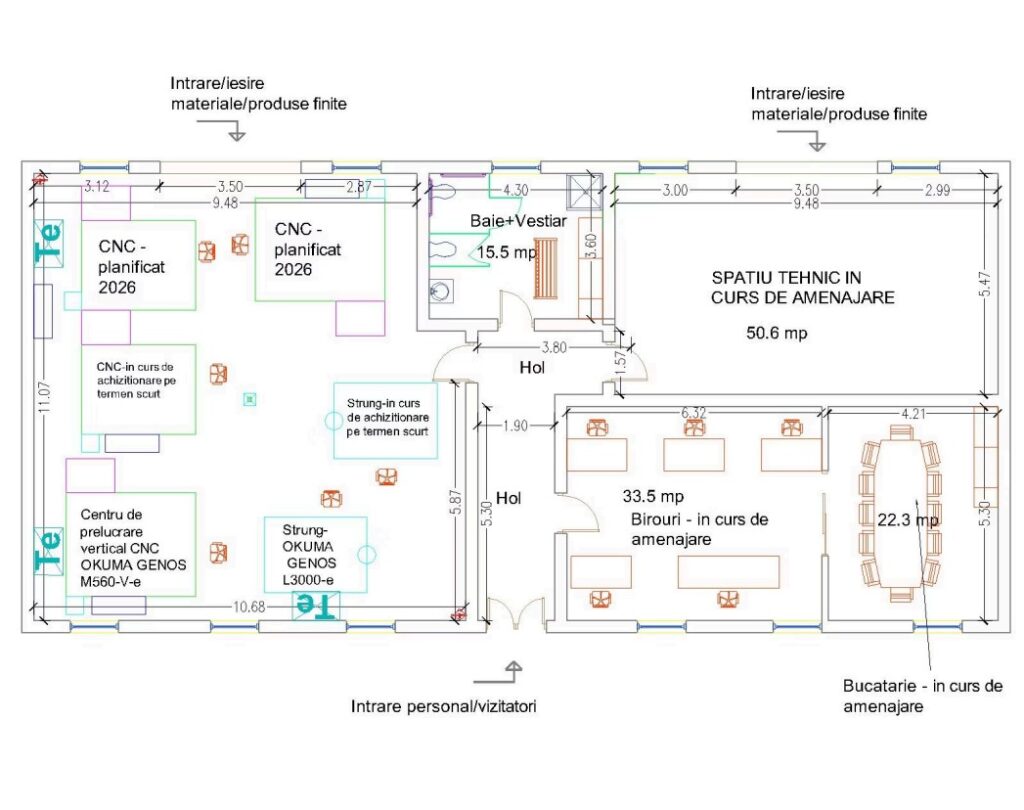 La Optim Hub, ne mândrim cu un spațiu de producție modern, conceput pentru eficiență maximă și precizie excepțională. Fiecare zonă este optimizată pentru a susține fluxul de lucru, de la recepția materialelor până la finisarea produselor. Planul detaliază organizarea strategică, iar imaginile reflectă angajamentul nostru pentru un mediu de lucru ordonat și tehnologizat.